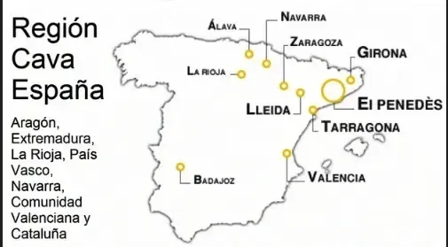 Cava = šumivé víno vyráběné tradiční šampaňskou metodou, pocházející z oblastí DO Cava. Oblasti DO Cava můžete nalézt po celém Španělsku, nejedná se tedy pouze o jednu konkrétní oblast. DO Cava se nachází např v Katalánsku (Penedés), v provincii Valencia, Zaragoza, Rioja a další. Mapa níže nám pomůže se zorientovat.